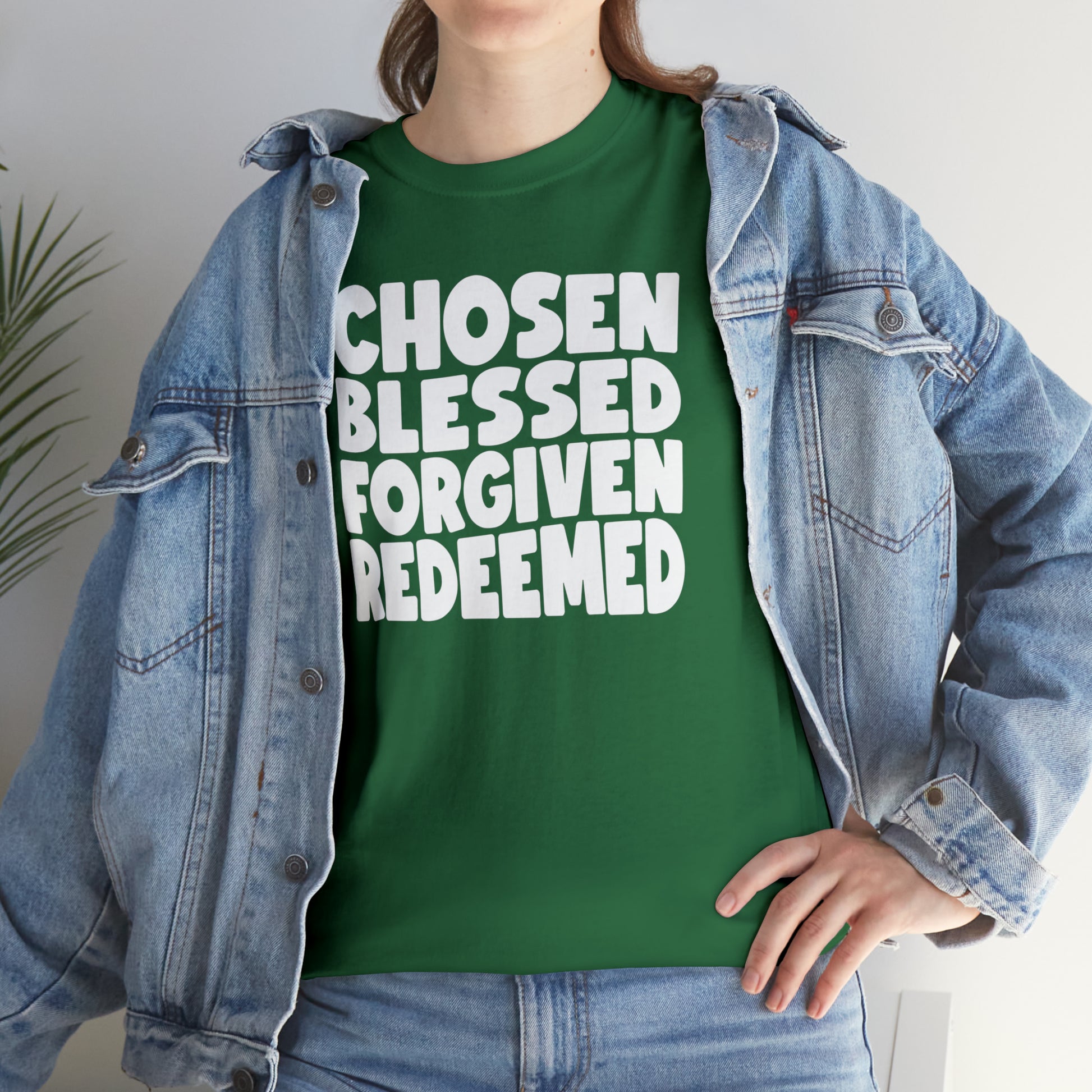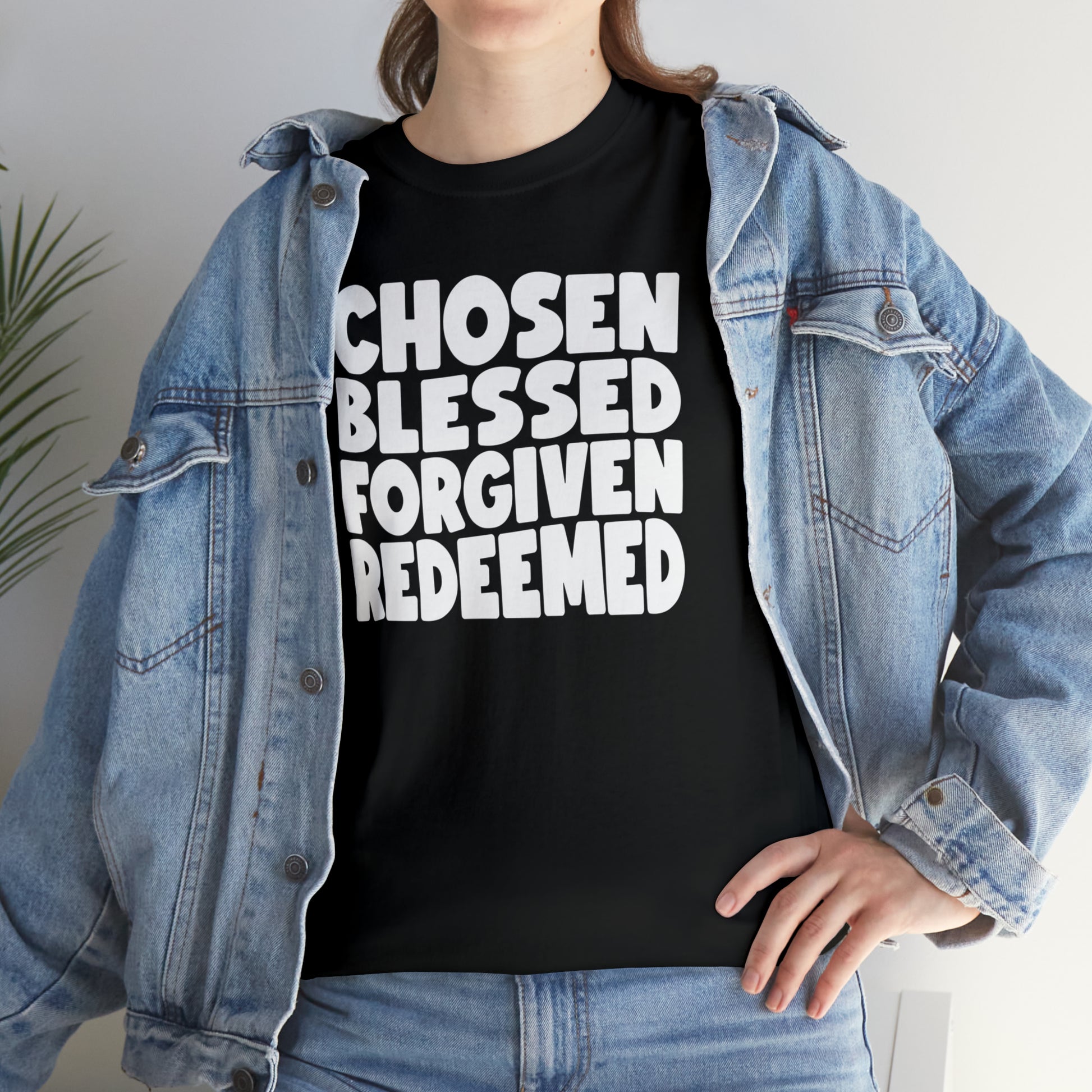 CHOSEN BLESSED FORGIVEN REDEEMED - DRK TEE
