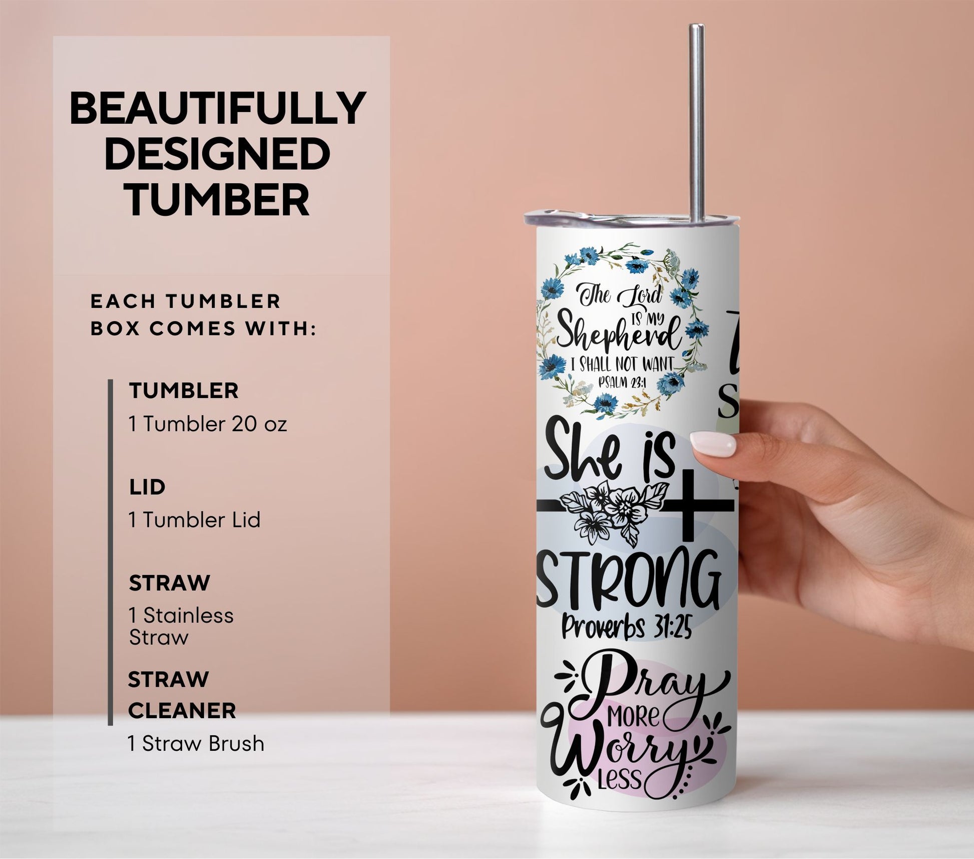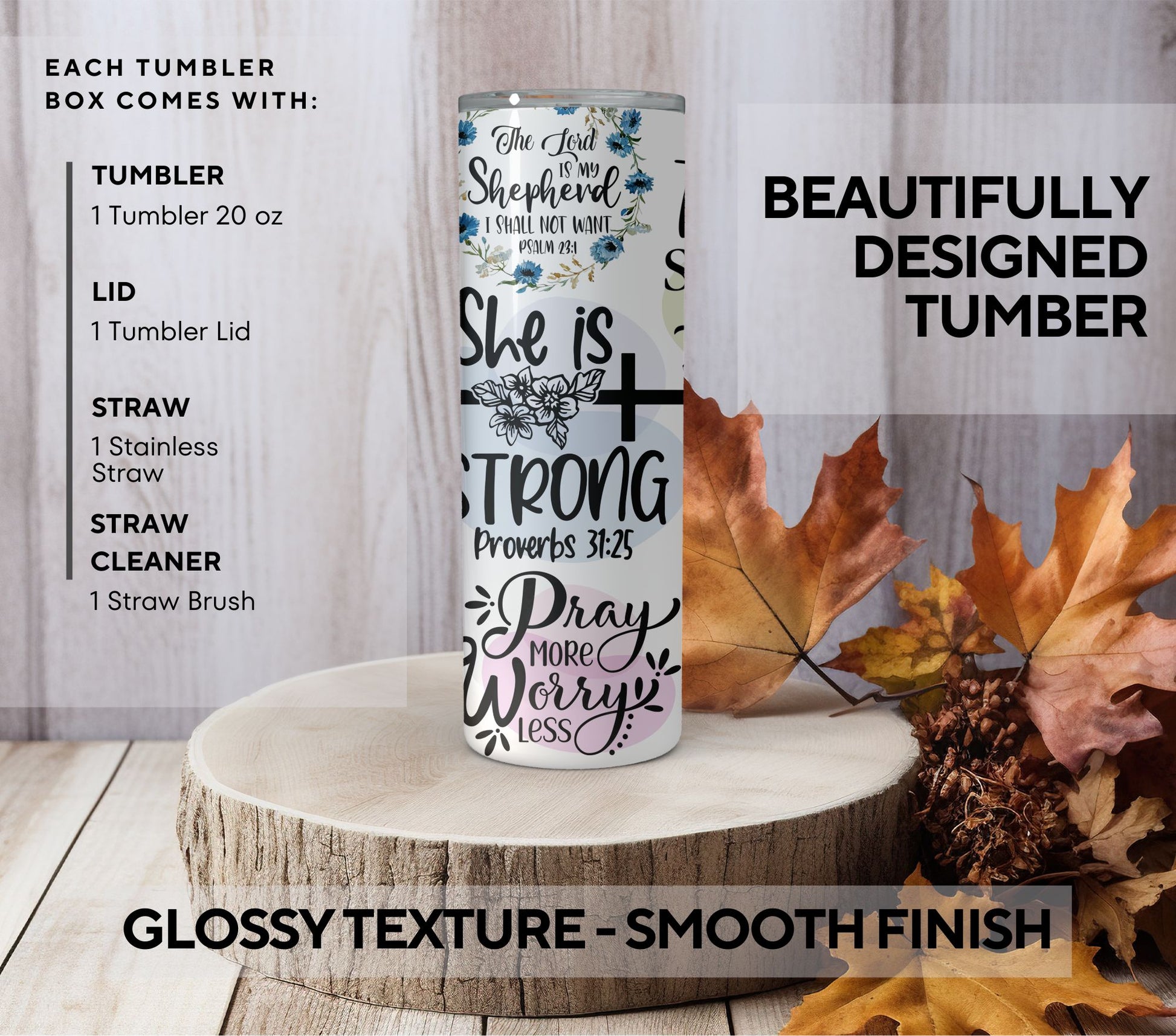 Experience a new way to enjoy your favorite beverages while staying connected to your faith with our Bible Verses Tumblers. Crafted with love and devotion, these tumblers are more than just containers for your drinks; they're vessels of inspiration and spiritual nourishment.