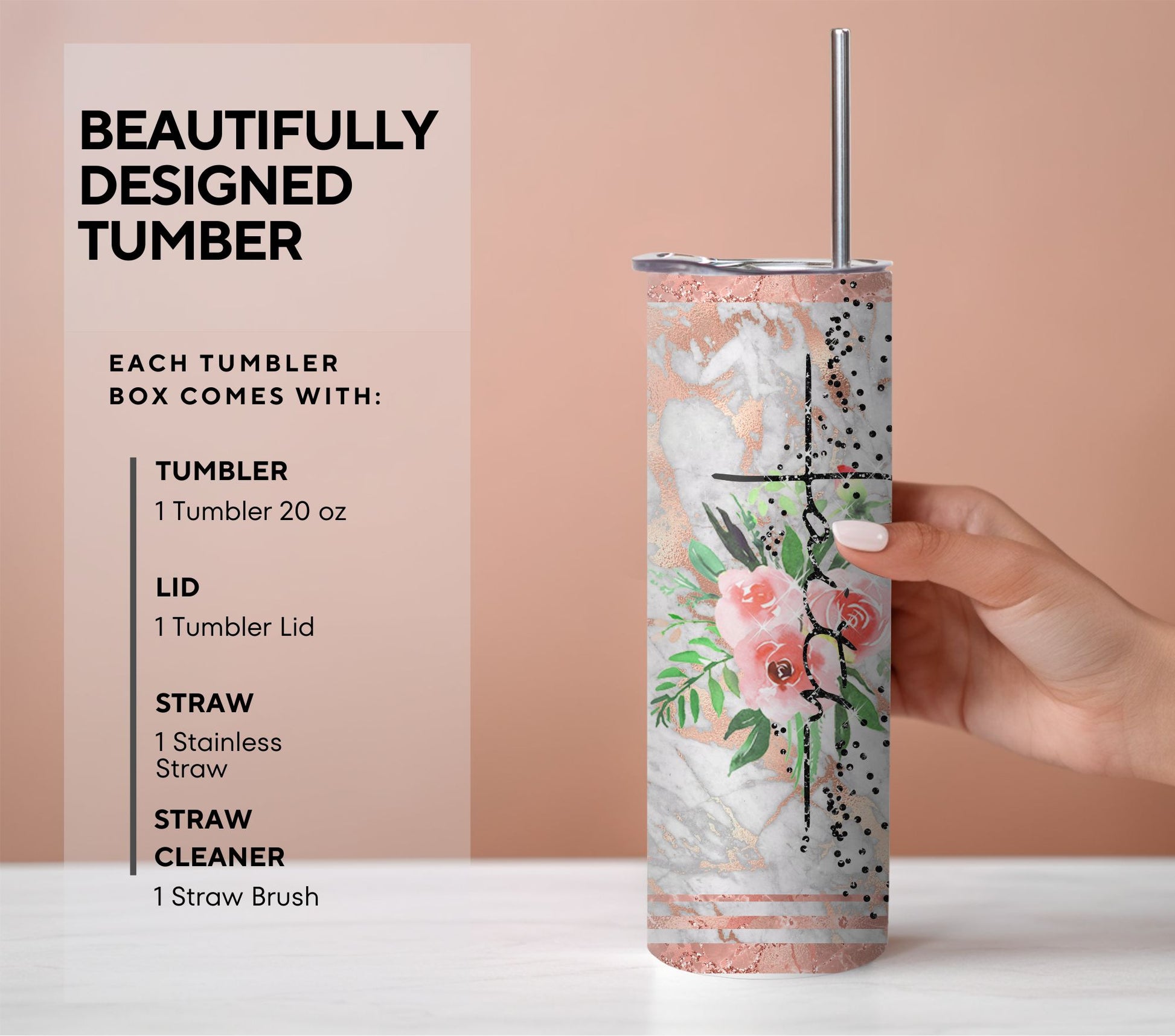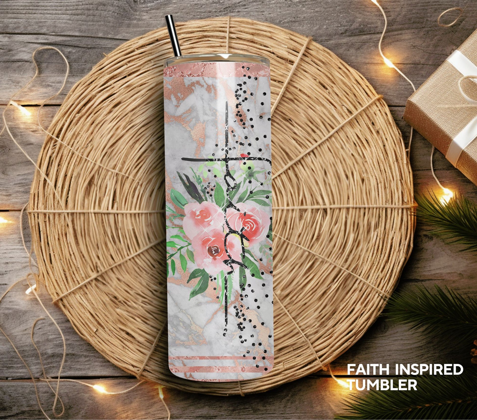 Elegant Design: The tumbler's sleek design is complemented by tasteful typography and intricate artwork that enhances your personal style and devotion.