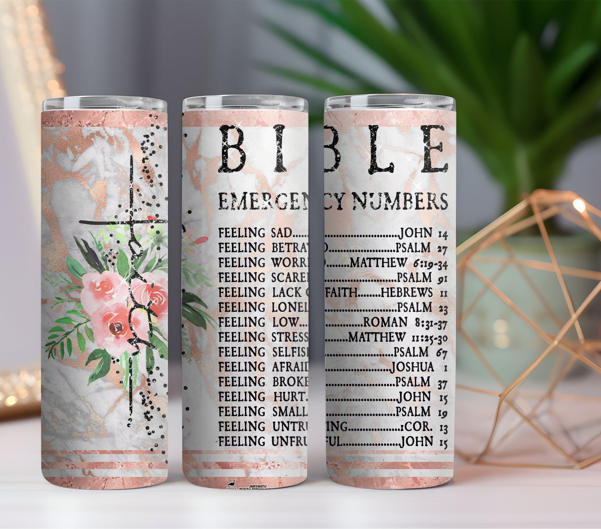 Faithful Inspiration: Each tumbler is adorned with a carefully selected Bible verse, beautifully designed to remind you of God's grace and guidance in your daily life.